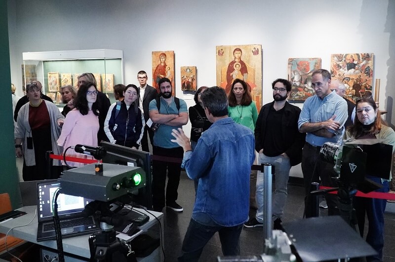 On Wednesday, November 12, the museum opened its doors to the public for the event “Art Meets Innovation: DHSPI Technology Measures the Invisible”. Attendees witnessed a live demonstration where the DHSPI system—developed at the Institute of Electronic Structure and Laser of the Foundation for Research and Technology-Hellas (IESL/FORTH) and advanced under the European iPhotoCult project—was used to perform non-invasive diagnostics on priceless artworks in real-time.