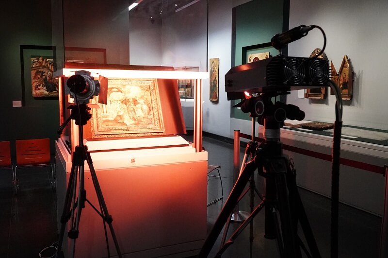The highlight of the day was the scanning of Domenikos Theotokopoulos's (El Greco) early masterpiece, “The Adoration of the Magi” (circa 1565-67). The DHSPI system, acting as a super-powered "diagnostic eye," used laser light to reveal and map microscopic deformations and hidden structural flaws invisible to the naked eye, providing a stunning visual representation of the artwork's structural health.